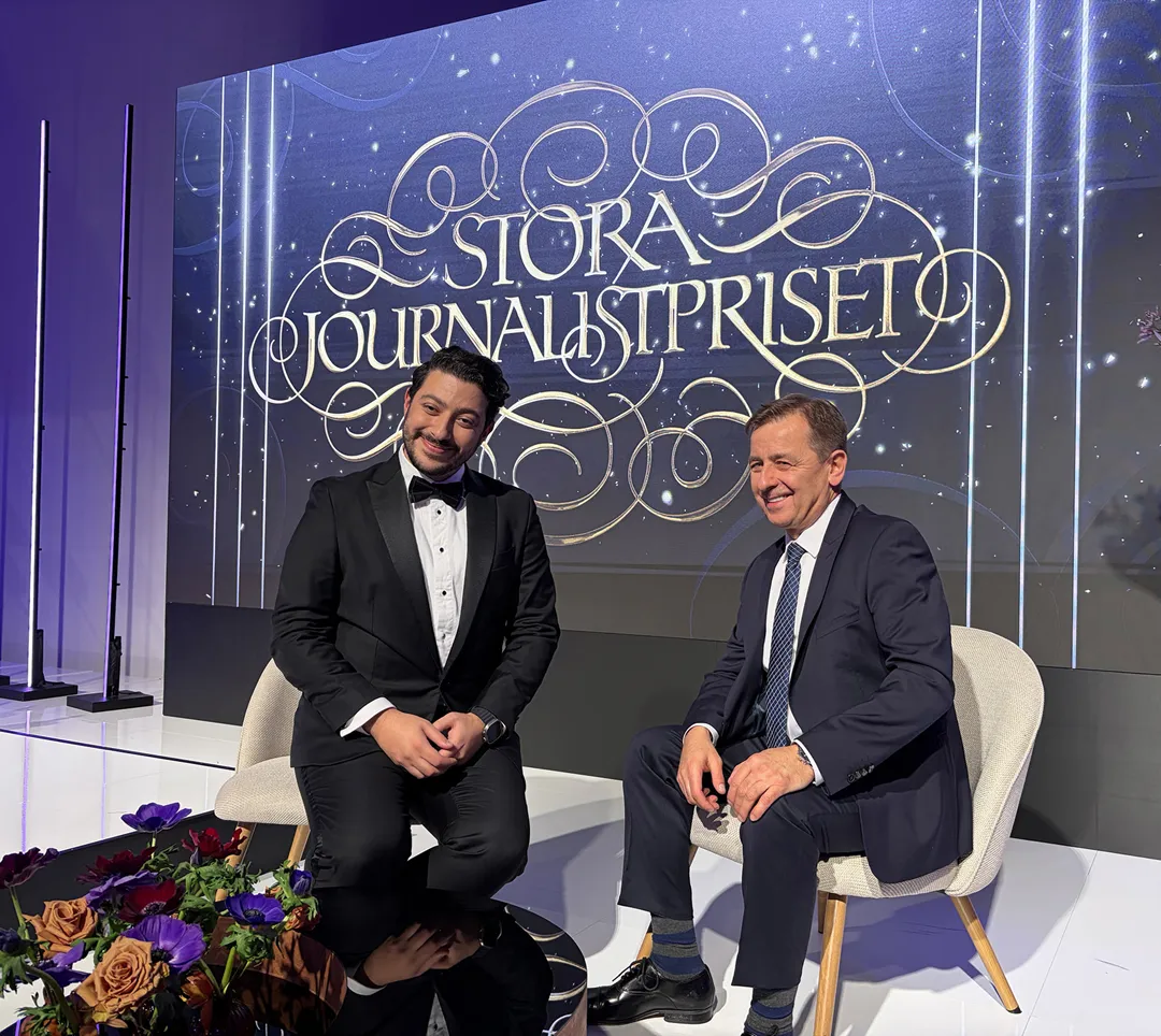 Flera pristagare var märkbart rörda när Stora journalistpriset delades ut vid galan i Bonniers konsthall i Stockholm på torsdagen med Föreningen Grävande journalisters förre ordförande, SVT-reportern Fouad Youcefi, som värd.