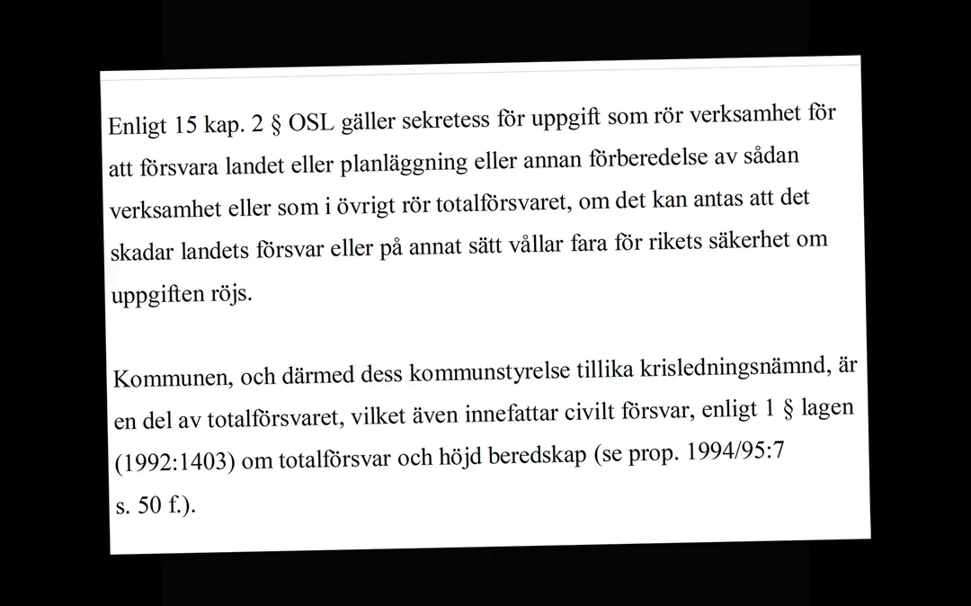 Tre av kommunerna hänvisar till sina webbsidor, där personnummer inte framgår. När Scoop ber om en komplett lista vägrar de först att lämna ut dem, men efter att vi begär ett beslut som går att överklaga lämnar Region Gotland ut uppgifterna via en krypterad digital meddelandetjänst medan Överkalix skickar en lista i ett kuvert. Karlskrona vidhåller sitt beslut med hänvisning till att kommunstyrelsen är en del av totalförsvaret.